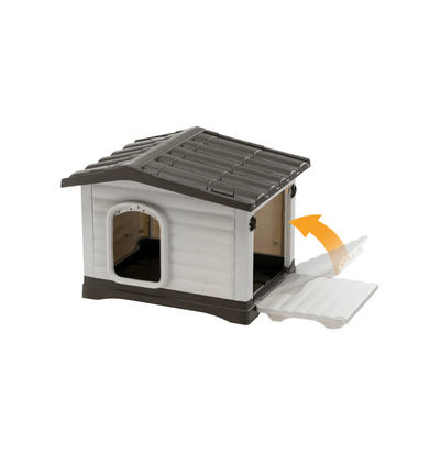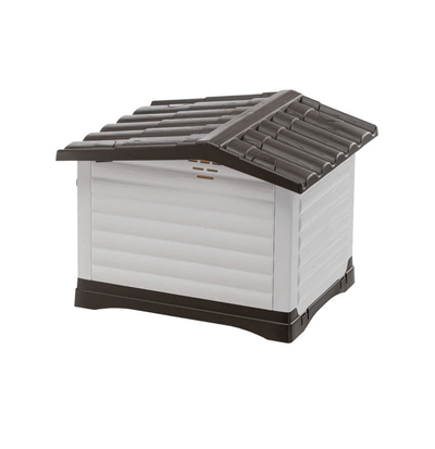 - Caseta exterior de resina termoplástica para perros pequeños.