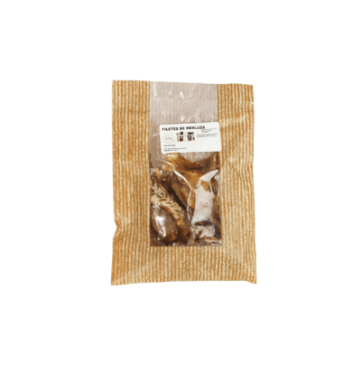 Son boquerones deshidratados de tamaño manejable en bolsas de 50 g.