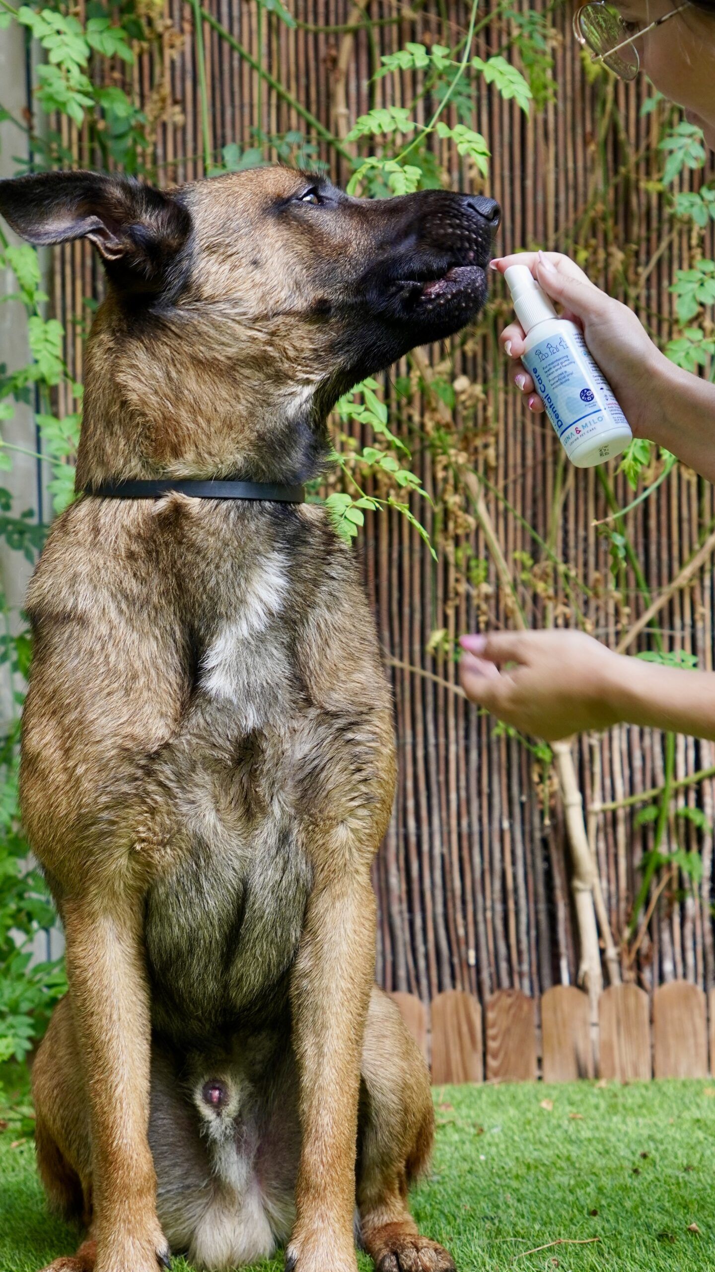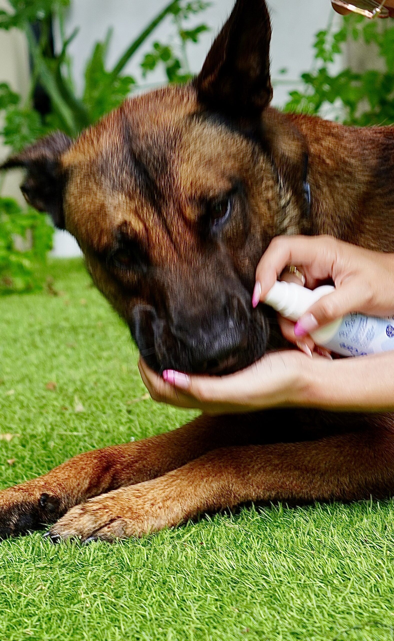 - Spray bucal natural con probióticos que promueve una microbiota oral saludable en perros y gatos, ayudando a mantener dientes y encías limpios y sanos.